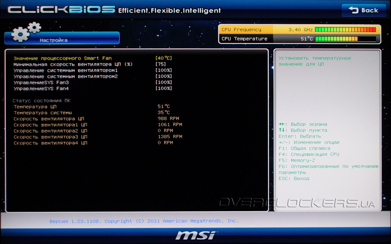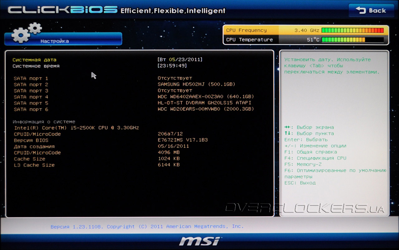 Следующий важный пункт меню — «Настройка», в котором находятся установки даты и времени, опции управления дополнительными контроллерами, настройки видеоподсистемы, параметры загрузки, а также микропрограмма для обновления прошивки M-Flash.