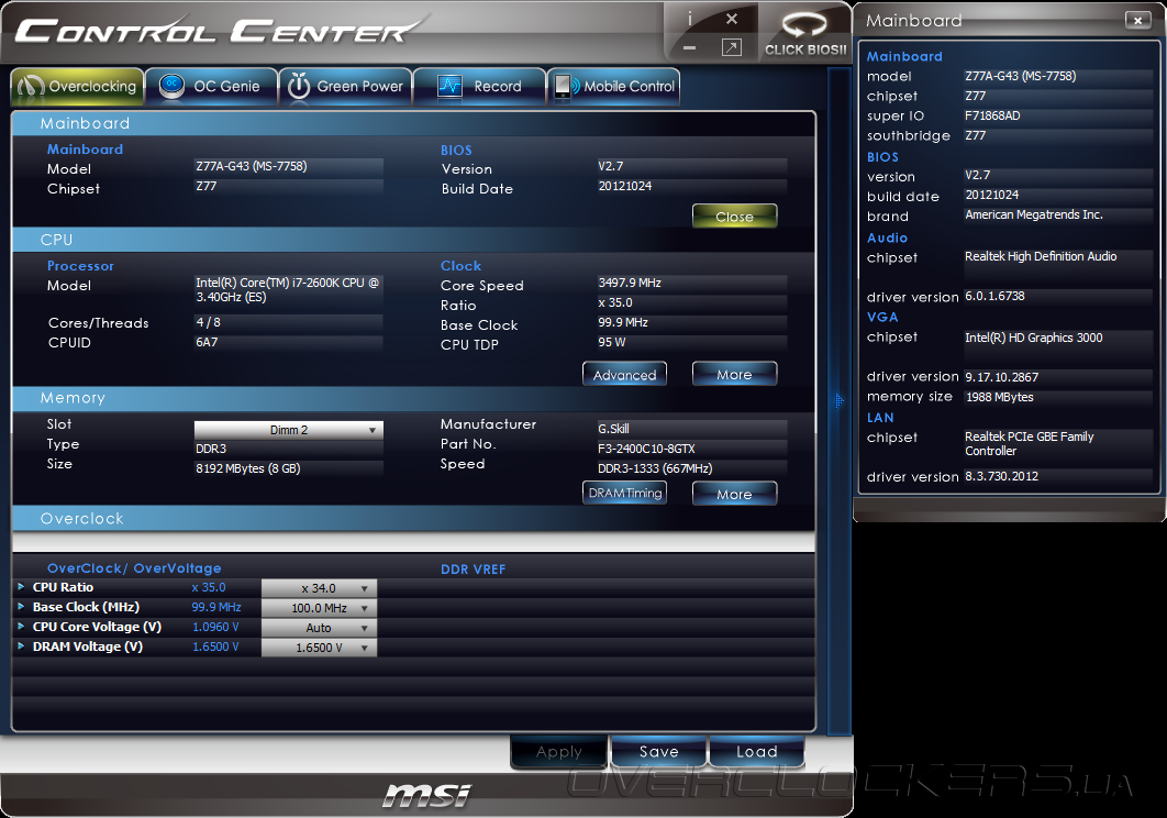 Обзор материнской платы MSI Z77A-G43. Изучение влияния частоты оперативной памяти на производительность системы