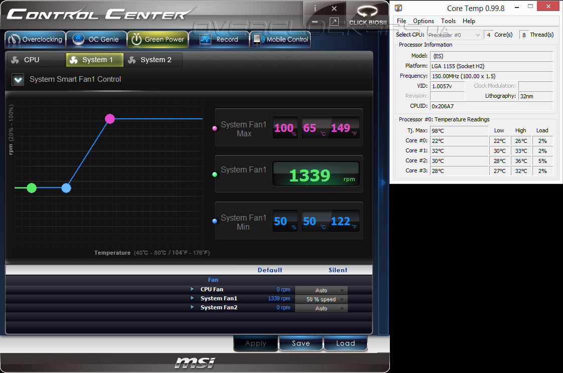 Для мониторинга и контроля за параметрами MSI приготовила другую утилиту — Control Center II. Отметим, что для удобного перемещения между этими двумя утилитами программисты предусмотрели удобную кнопку в правом верхнем углу.