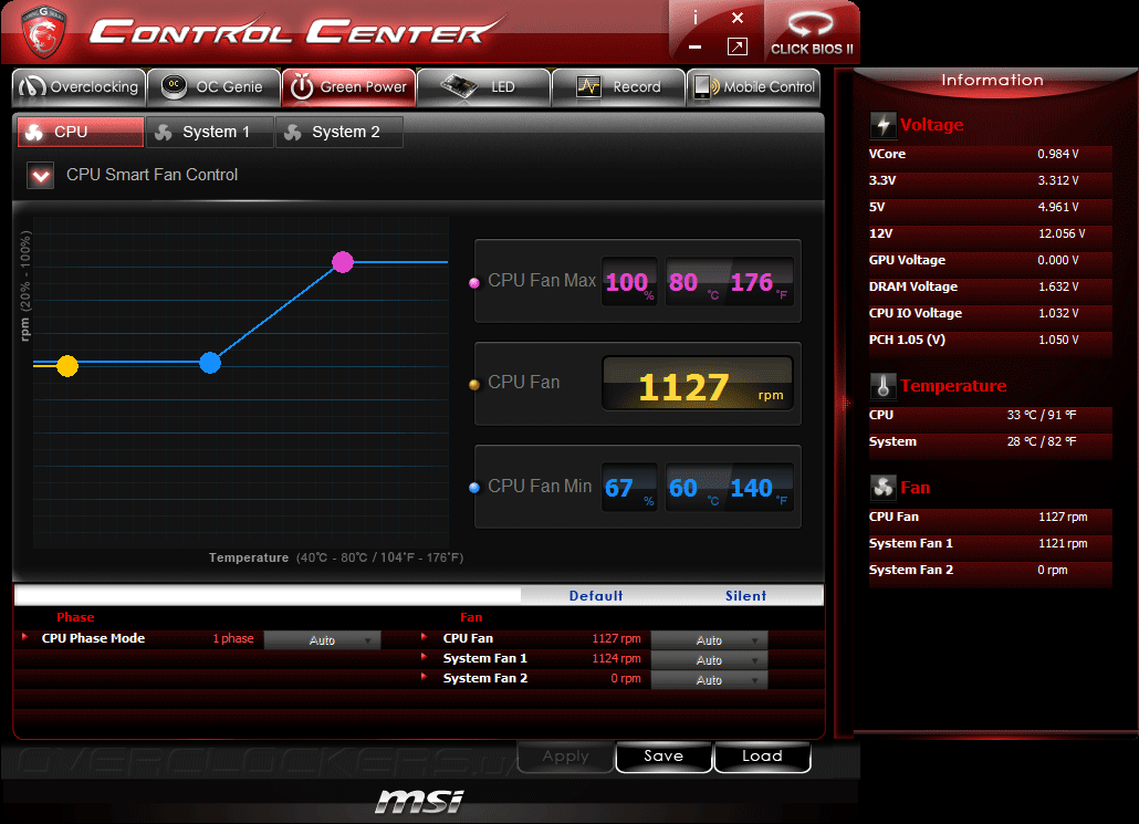 Для управления скоростями вращения вентиляторов служит вкладка Green Power, на которой можно выбрать один из предустановленных профилей, либо задать режим работы «вертушек» вручную.