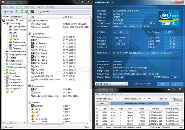 - процессор: Intel Core i5-3570K (3,4 ГГц, 6 Мбайт кэш L3);