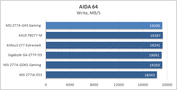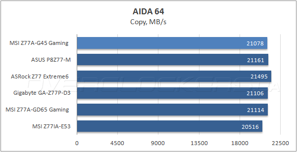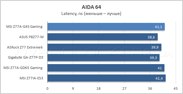 В низкоуровневых тестах быстродействия оперативной памяти MSI Z77A-G45 Gaming уверенно держится в плотной группе соперниц, показывая очень хорошие результаты.