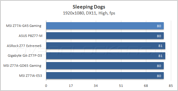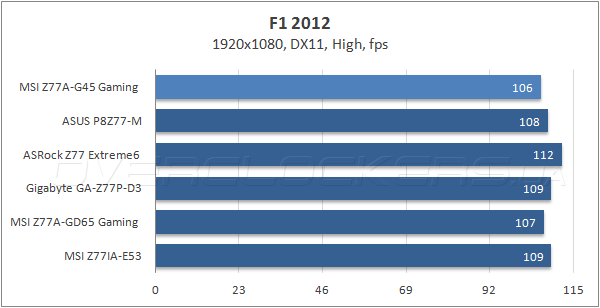 В реальных игровых тестах картина аналогична результатам в 3DMark 11, MSI Z77A-G45 Gaming демонстрирует не самую высокую частоту смены кадров среди конкурсанток, хотя, на комфортности геймплея это не скажется никоим образом.
