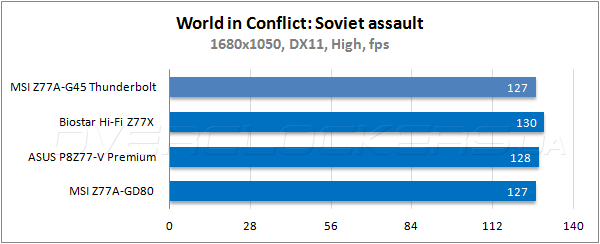 Продуктивность графической подсистемы тестового стенда, собранного на Z77A-G45 Thunderbolt, в точности повторяют достижения «старшей сестры» MSI Z77A-GD80.