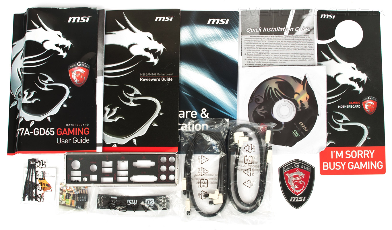 В комплекте поставки MSI Z77A-GD65 Gaming нашлись: