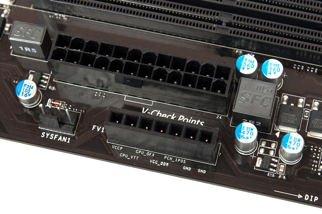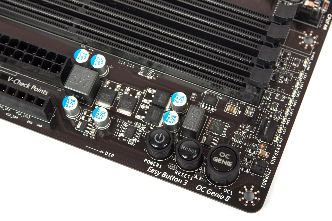 Серия материнских плат Gaming предназначена, в первую очередь, для фанатов компьютерных игр, тем не менее, новинка обладает рядом особенностей, которые привлекут любителей разгона. Так, MSI Z77A-GD65 Gaming оснащена пятью разъемами для подключения вентиляторов, причем, три из них имеют возможность управления скоростью вращения посредством ШИМ. Также, новинка располагает контактами для измерения напряжений V-Check Points, к которым при помощи комплектных удлинителей подключаются щупы цифрового мультиметра.