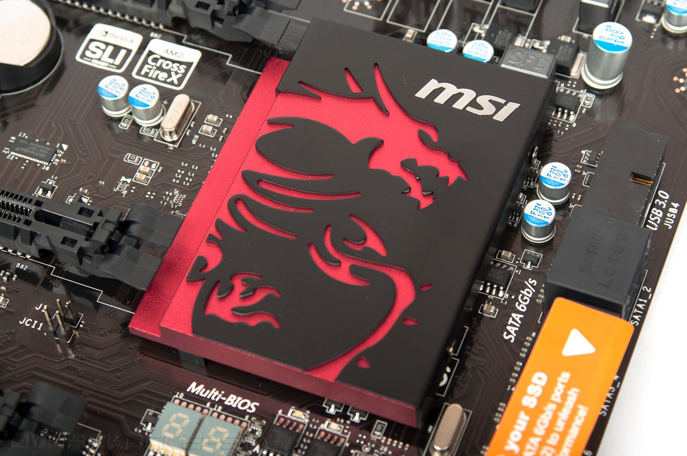 Новинка позволяет объединять видеокарты AMD CrossFireX и NVIDIA SLI, а для установки карт расширения присутствуют четыре разъема PCI Express 2.0 x1, подключенные к системной логике Intel Z77 Express. Она также отвечает за работу двух портов SATA 6 Гбит/с и четырех разъемов 3 Гбит/с. Два дополнительных канала SATA 6 Гбит/с реализованы за счет микросхемы ASMedia 1061.