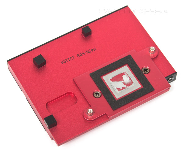 В качестве термоинтерфейса используется серая «терможвачка», а сам чип контактирует с радиатором через теплораспределитель.