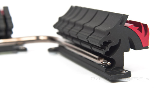В конструкции используется тепловая трубка, отвечающая за равномерное распределение тепла. Для крепления к системной плате используются подпружиненные винты, обеспечивающие высокое усилие прижима.