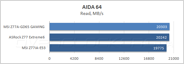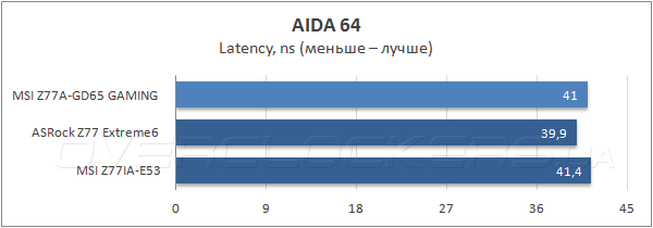 В синтетических тестах пропускной способности ОЗУ новинка показала очень хорошие результаты, сопоставимые с материнской платой ASRock, и заметно опередила вторую модель MSI — Z77IA-E53.
