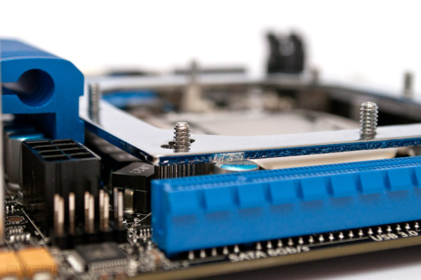 Но оказалось, что полимерный конденсатор, расположенный неподалеку от процессорного разъема, мешает установке крепления, так что он этой затеи пришлось отказаться.