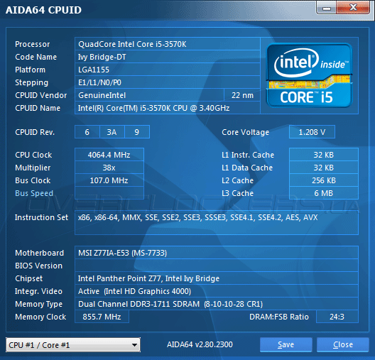 В части повышения базовой частоты MSI Z77IA-E53 проявила себя наилучшим образом, обеспечив прирост BCLK до 107 МГц.