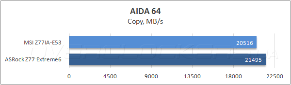 В тестах низкоуровневой производительности оперативной памяти MSI Z77IA-E53 заметно уступила сопернице, очевидно, из-за недостаточно качественной прошивки.