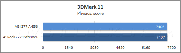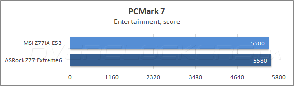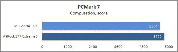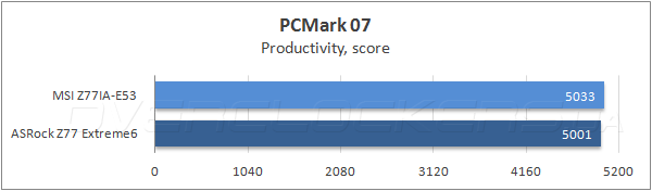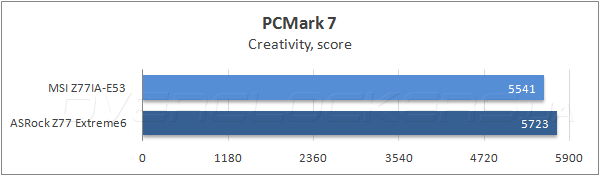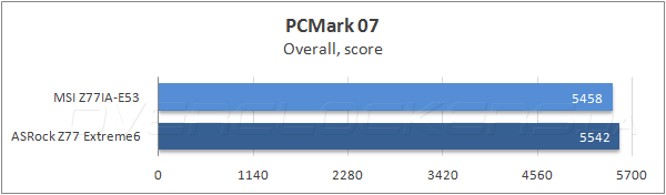 В комплексном бенчмарке PCMark 7 новинка также проиграла ASRock Z77 Extreme6. Отставание нельзя назвать критическим и оно никак не скажется на комфорте повседневной работы.