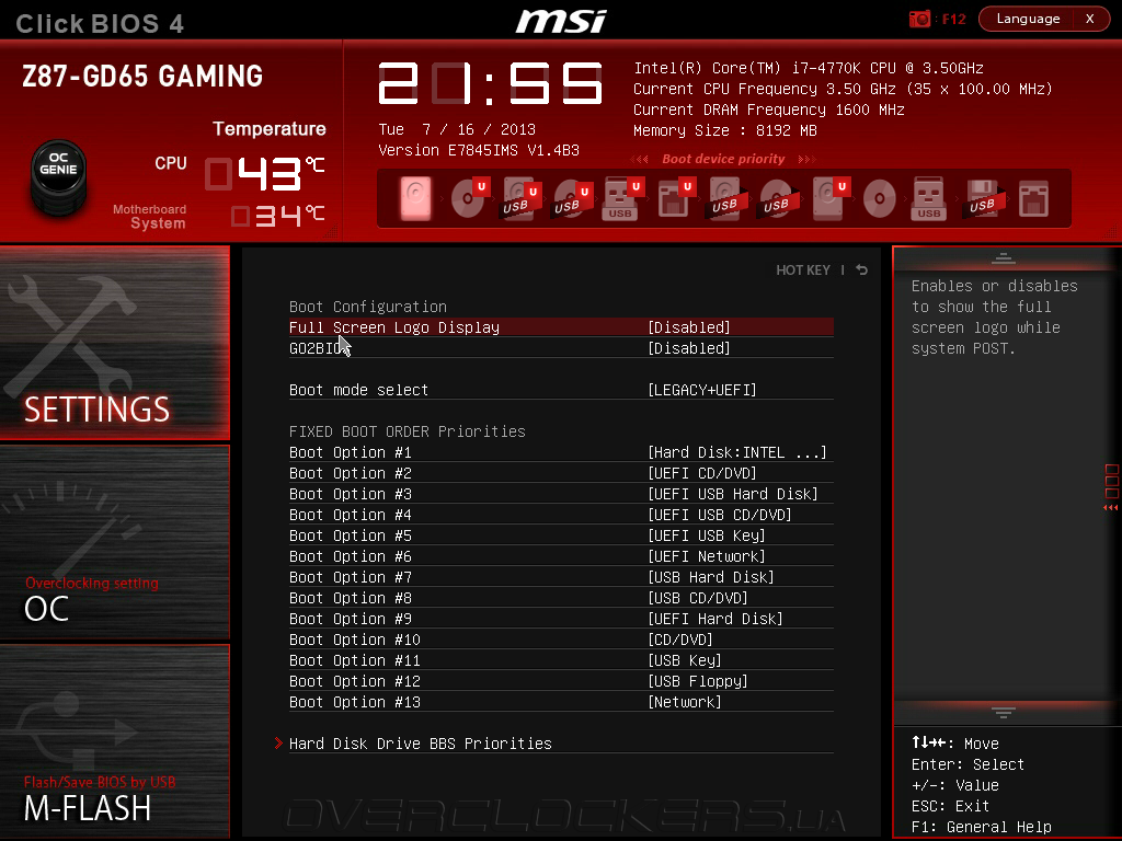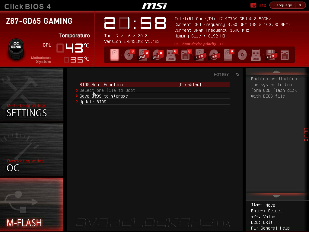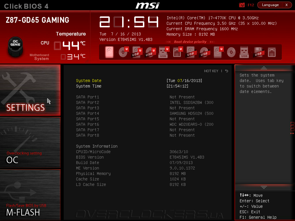 - MSI Z87-GD65 Gaming ( UEFI Setup V1.4B3 от 09.07.2013);