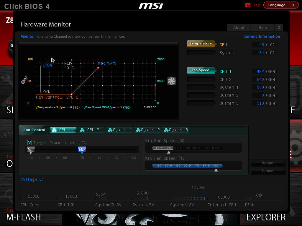 К дополнительным функциям Command Center относятся регулировка таймингов ОЗУ, управление напряжениями на всех основных узлах материнской платы. И, наконец, программа предоставляет мощные инструменты для управления скоростями вращения вентиляторов.