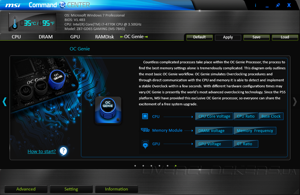 Помимо перечисленных выше функций, программа позволяет управлять частотой и напряжением встроенного графического ядра. А еще Command Center дает возможность создавать RAMDisk в области оперативной памяти и запускать автоматический разгон OC Genie.