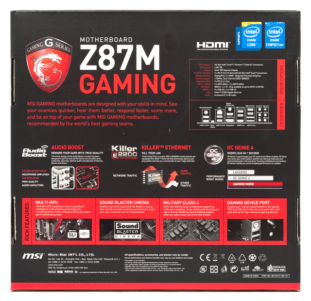 Как позиционирование продукта, так и его комплектация являются срединными между ранее анонсированными Z87-G45 Gaming и Z87-GD65 Gaming. В целом, она вполне достаточна.