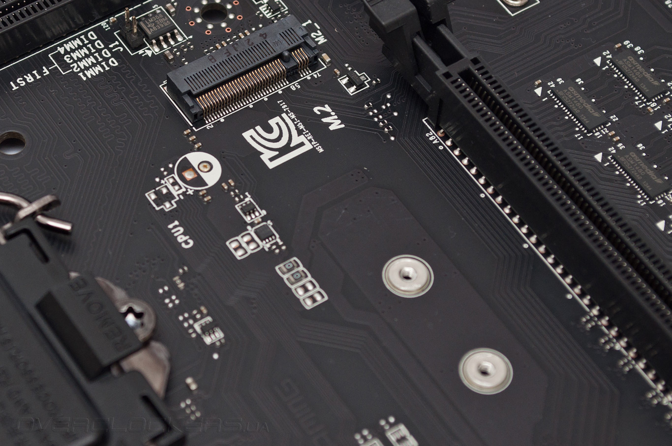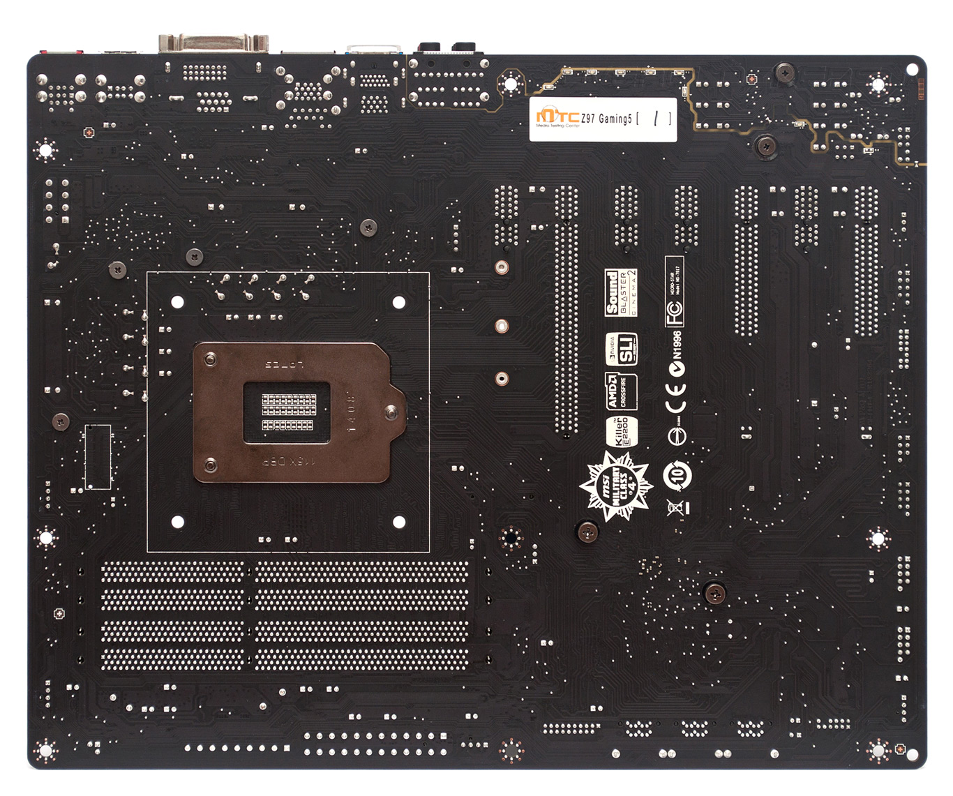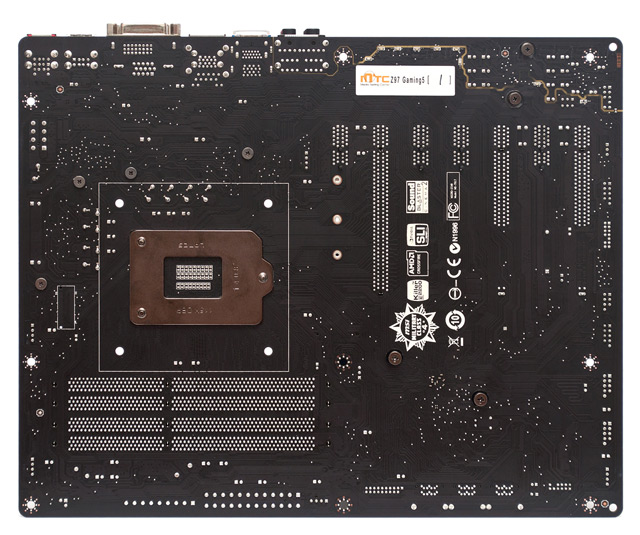 Выступающие элементы с обратной стороны РСВ отсутствуют, лишь в районе процессорного разъема видны выводы катушек индуктивности процессорного VRM, но и они вряд ли помешают установке даже самых массивных кулеров.