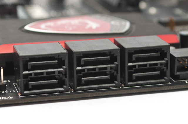 Микросхема системной логики охлаждается крупным плоским радиатором, на который нанесен логотип серии. На эффективность это никак не влияет, зато смотрится очень эффектно.