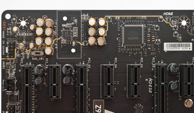 MSI Z97 Gaming 5 оснащена аудиоподсистемой Audio Boost 2, которая базируется на распространенном 7.1 HDА-кодеке Realtek ALC1150, но в конструкции звукового тракта многое сделано для повышения качества воспроизведения. Низкочастотные цепи отделены от остальной части системной платы изолирующим зазором, а звуковой чип окружен металлическим экраном. Кроме того, инженеры MSI использовали качественные японские конденсаторы Nichicon, а для полноценной работы игровых стереогарнитур с высоким внутренним сопротивления есть пара операционных усилителей Texas Instruments OPA1652, для которых можно подать дополнительное питание с помощью комплектного переходника.