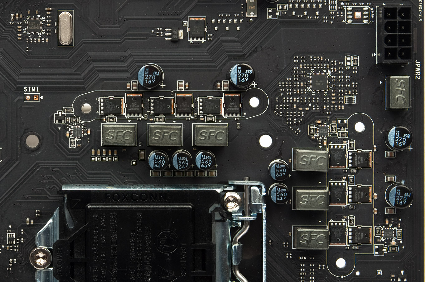 ШИМ-контроллер не первый раз встречается в составе продуктов MSI, это четырёхканальный uP1649. Здесь же воспользовались лишь частью его возможностей. При помощи трёх драйверов-удвоителей uP1951 общее число каналов вырастает до шести «виртуальных». В составе каждого используется пара силовых элементов от Niko Semiconductor — PK616BA и PK632BA. Хватит ли этого для должной работы стабилизатора — покажет будущее тестирование, а вот о качестве компонентов, кажется, можно не волноваться, ведь такие же распаяны в составе куда более представительной MSI Z97 Gaming 7, правда, там их ровно в два раза больше.