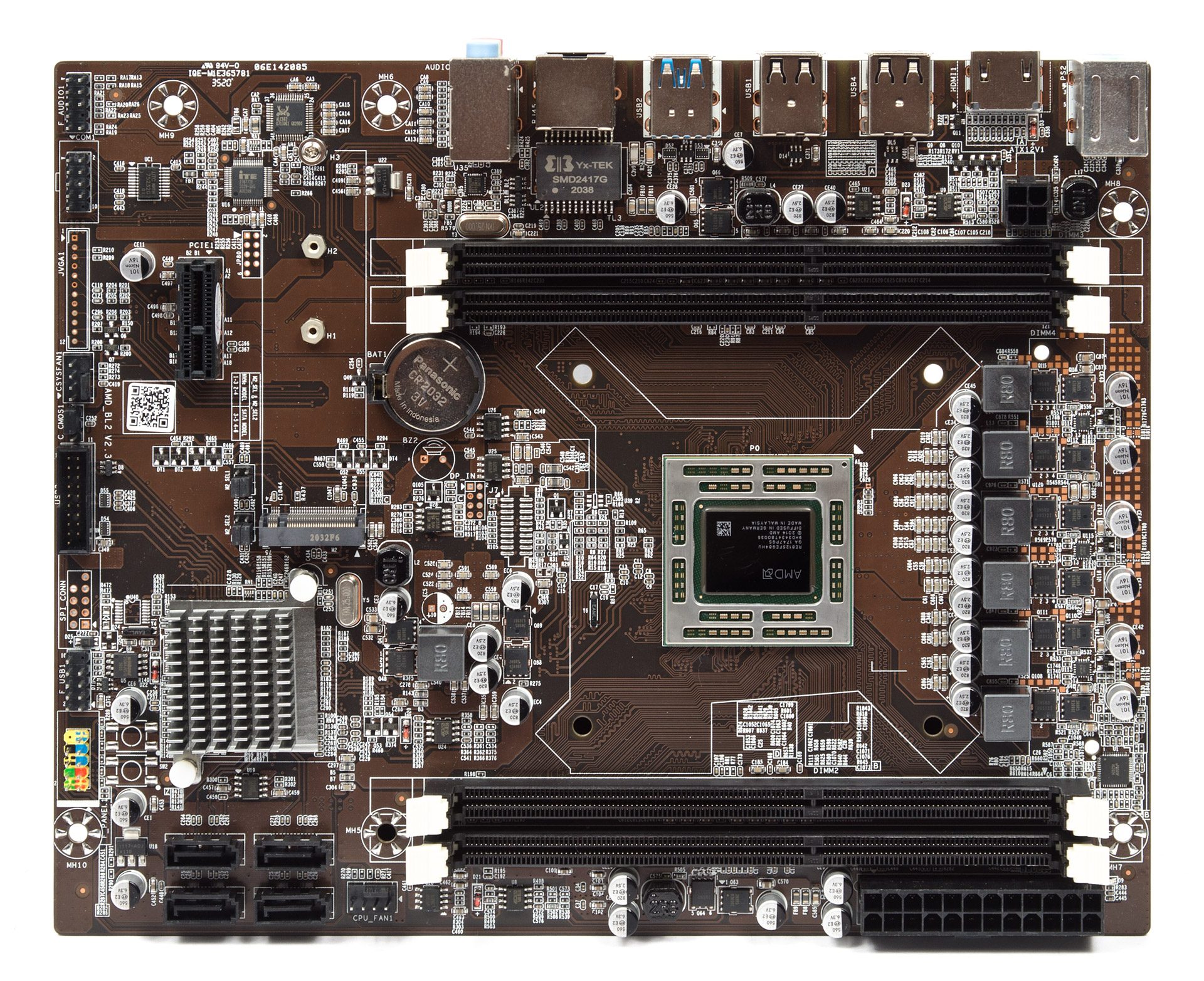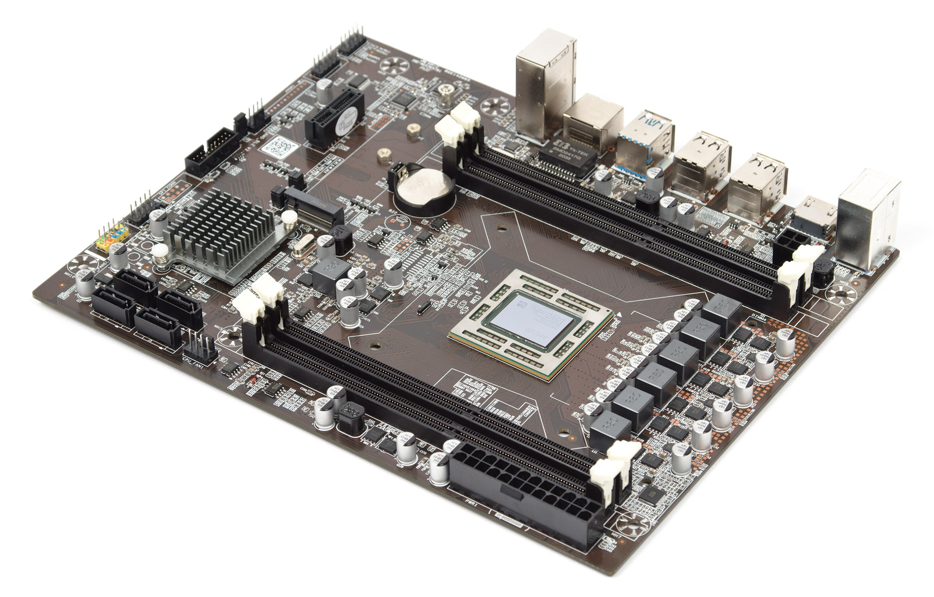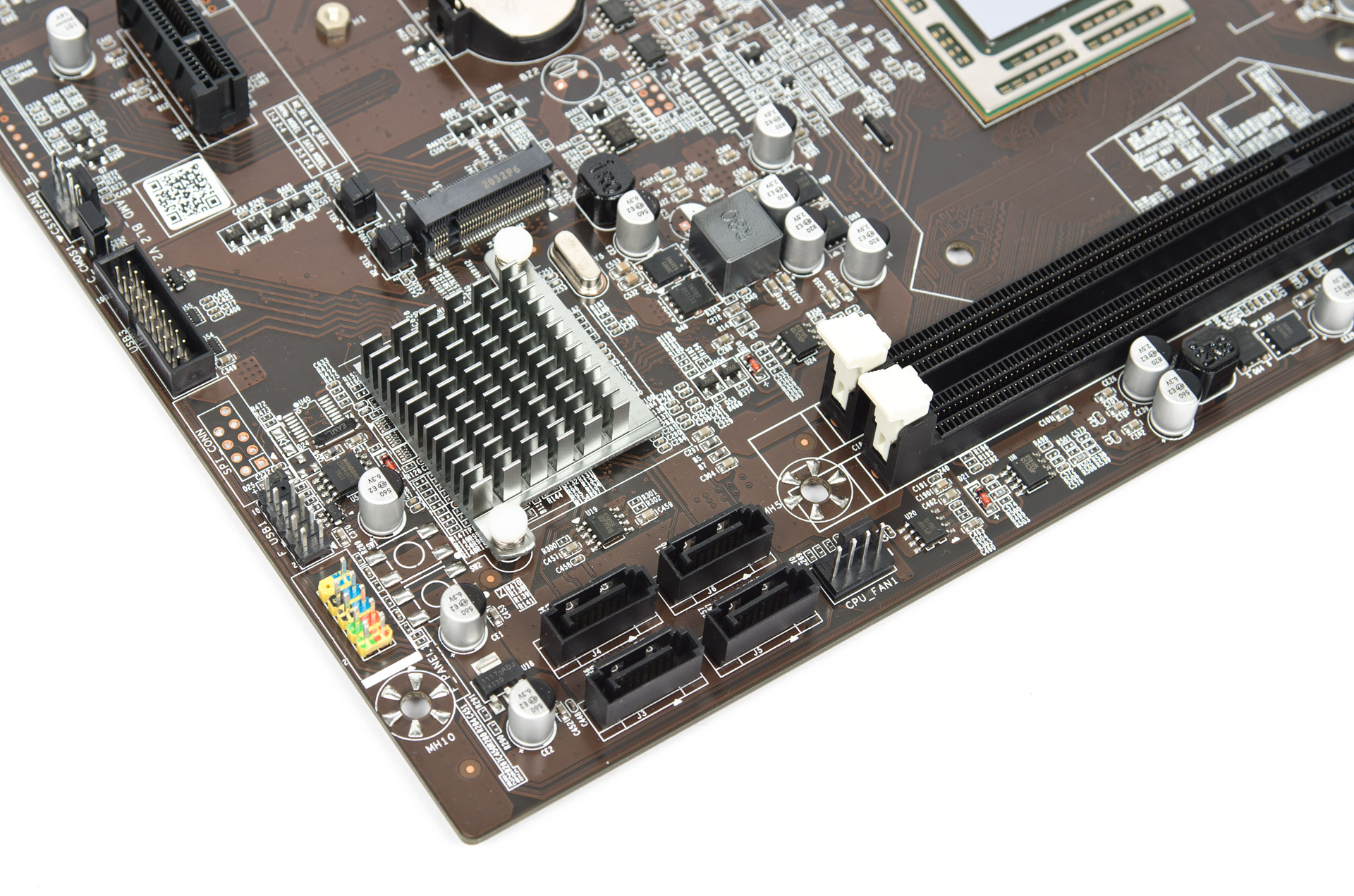 Слот расширения один — PCI-E x1, есть еще универсальный M.2, который с помощью перемычек рядом может работать как в режиме PCI-E, так и в SATA. Весьма неожиданно, но платформа поддерживает NVMe-накопители, чем типичный AMD Jaguar похвастаться не мог.
