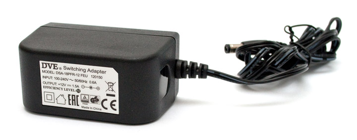 Блок питания имеет маркировку DSA-18PFR-12, он произведен тайваньской компанией Dee Van Enterprise и рассчитан на работу в сетях переменного тока с напряжением 100-240 В и с частотой 50/60 Гц. Выходная мощность адаптера составляет 18 Вт при напряжении 12 В и силе тока 1,5 А. Таким образом, мощности должно хватить как на обслуживание собственно элементной базы маршрутизатора, так и на питание внешних устройств, подключаемых к порту USB.