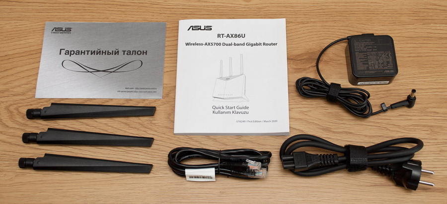 Комплект поставки ASUS RT-AX86U состоит из: