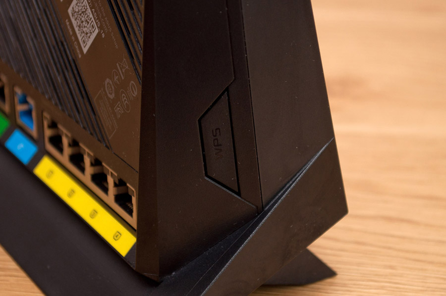 На левой стороне ASUS RT-AX86U находится кнопка активации WPS, которая служит для быстрого подключения беспроводных устройств. Впрочем, по мнению некоторых экспертов по безопасности включение WPS снижает уровень защищенности сетей Wi-Fi.