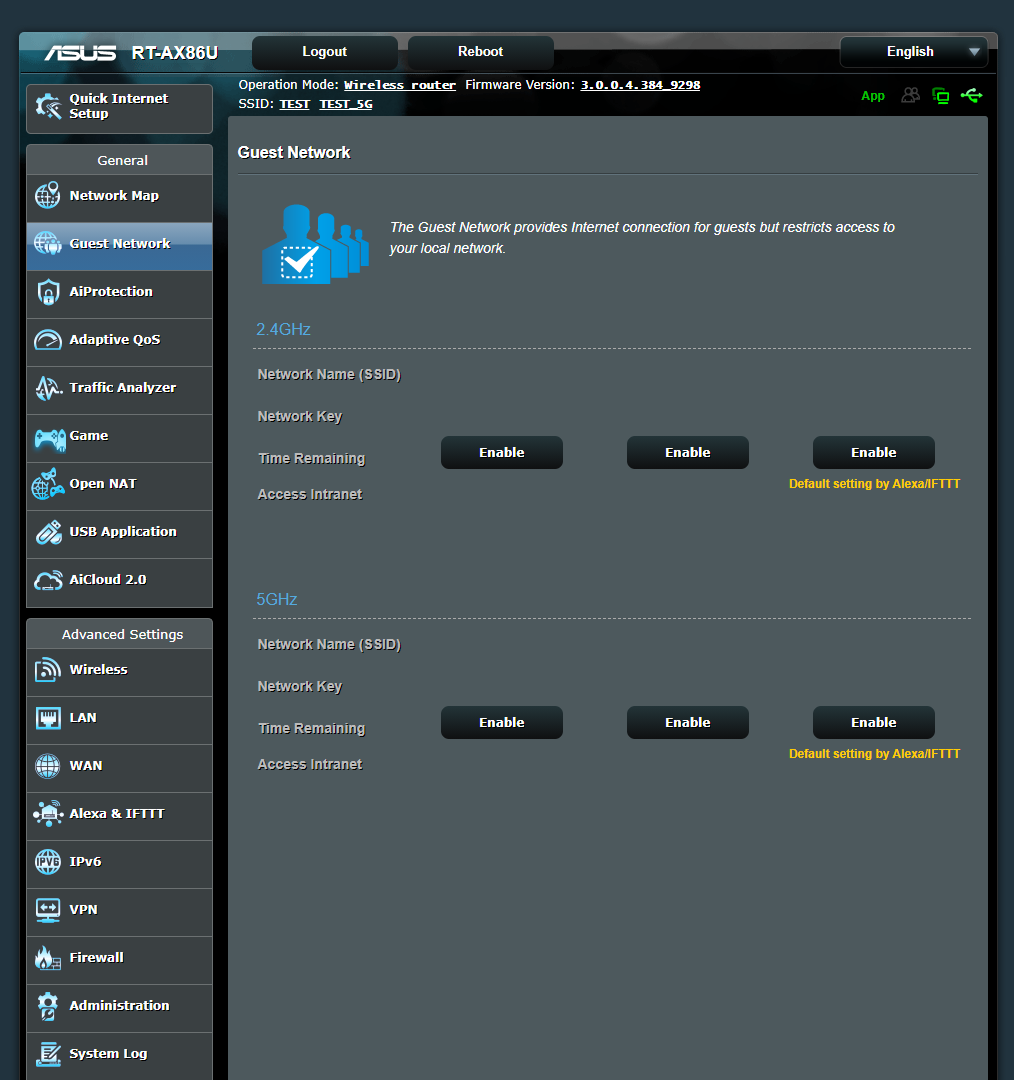 По большому счету, многим нетребовательным пользователям мастера Quick Internet Setup и вкладки Network Map может хватить для базового использования, а мы же продолжим изучение продвинутых возможностей прошивки, которая, например, позволяет организовать шесть гостевых сетей — по три в каждом из диапазонов 2,4 ГГц и 5 ГГц.