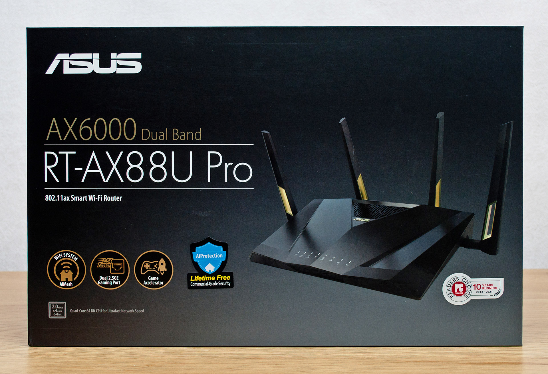 И с тем и с другим у ASUS RT-AX88U Pro оказывается полный порядок: беспроводной класс AX6000, набор высокоскоростных проводных интерфейсов и мощное программное обеспечение, скрывающее в себе приятный сюрприз. Все это и многое другое читатели узнают из сегодняшнего обзора, а прямо сейчас можно ознакомиться с техническими характеристиками маршрутизатора.