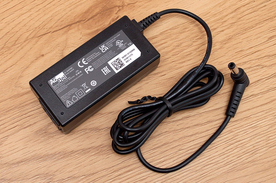 Сетевой адаптер ADK008 производства AcBel обеспечивает выходную мощность 45 Вт при напряжении 19,5 В и силе тока 2,31 А. Он рассчитан на работу в бытовых электросетях с напряжением от 100 до 240 В и частотой 50 Гц или 60 Гц.