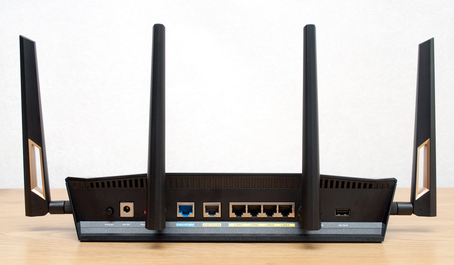 Функционирование четырех портов LAN 10/100/1000 BaseT и WAN 2.5G Ethernet обеспечивает сама однокристальная система, а за работу порта LAN 10/100/1000/2500 BaseT отвечает дополнительный контроллер Broadcom BCM84880, подключенный к BCM491MI с помощью высокоскоростного интерфейса USXGMII. Поддержка беспроводных сетей реализована на базе двух приемопередатчиков Broadcom BCM6715, работающих в диапазонах 2,4 ГГц и 5 ГГц соответственно. Радиомодули поддерживают все возможности Wi-Fi 6 Release 2: OFDMA, MU-MIMO на Downlink и Uplink, и полностью совместимы с ранними версиями беспроводных сетей. Оба BCM6715 обеспечивают работу MIMO в режиме 4T4R, что при использовании стандарта IEEE 802.11ax на частоте 2,4 ГГц дает скорость до 1142 Мбит/с, а в диапазоне 5 ГГц благодаря поддержке каналов с шириной полосы 160 МГц максимальная скорость достигает 4804 Мбит/с.