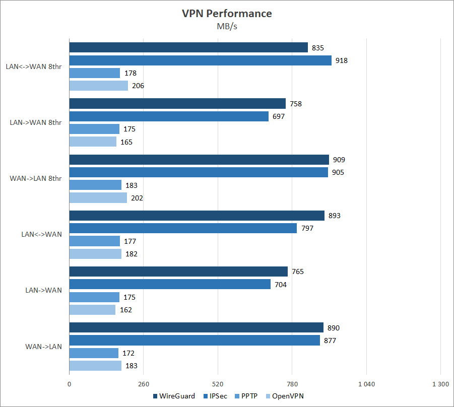 | VPN server | PPTP, OpenVPN, IPSec, WireGuard |