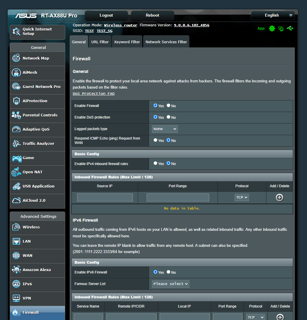 Кроме комплекса киберзащиты AiProtection Pro, беспроводной маршрутизатор оснащен «классическим» Firewall с поддержкой защиты от DDoS-атак и фильтрацией трафика по URL, ключевым словам и сетевым протоколам.