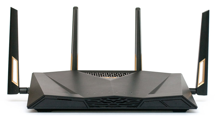 За работу беспроводных сетей отвечает пара чипов BCM43684 с поддержкой новейшего стандарта Wi-Fi 6. В режиме 802.11ax максимальная скорость может достигать 4,8 Гбит/с при использовании модуляции 1024 QAM, ширине канала 160 МГц и MIMO 4T4R. При этом присутствует обратная совместимость с 802.11а/b/g/n/ac. Наличие двух отдельных чипов позволяет организовать одновременную работу в двух частотных диапазонах 2,4 ГГц и 5 ГГц на скоростях до 1148 Мбит/с и 4804 Мбит/с соответственно, что позволяет причислить ASUS RT-AX88U к немногочисленному пока что классу устройств AX6000.
