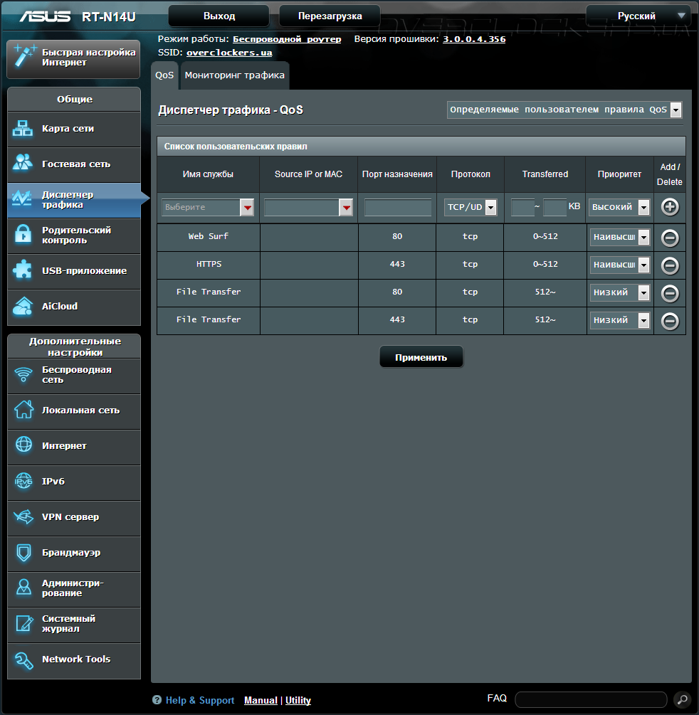 Возможность приоритезации трафика в современных маршрутизаторах является жизненно необходимой потребностью, и этот роутер не стал исключением. Quality of Service или «качество обслуживания» позволит определенному соединению дать более высокий приоритет над другими.