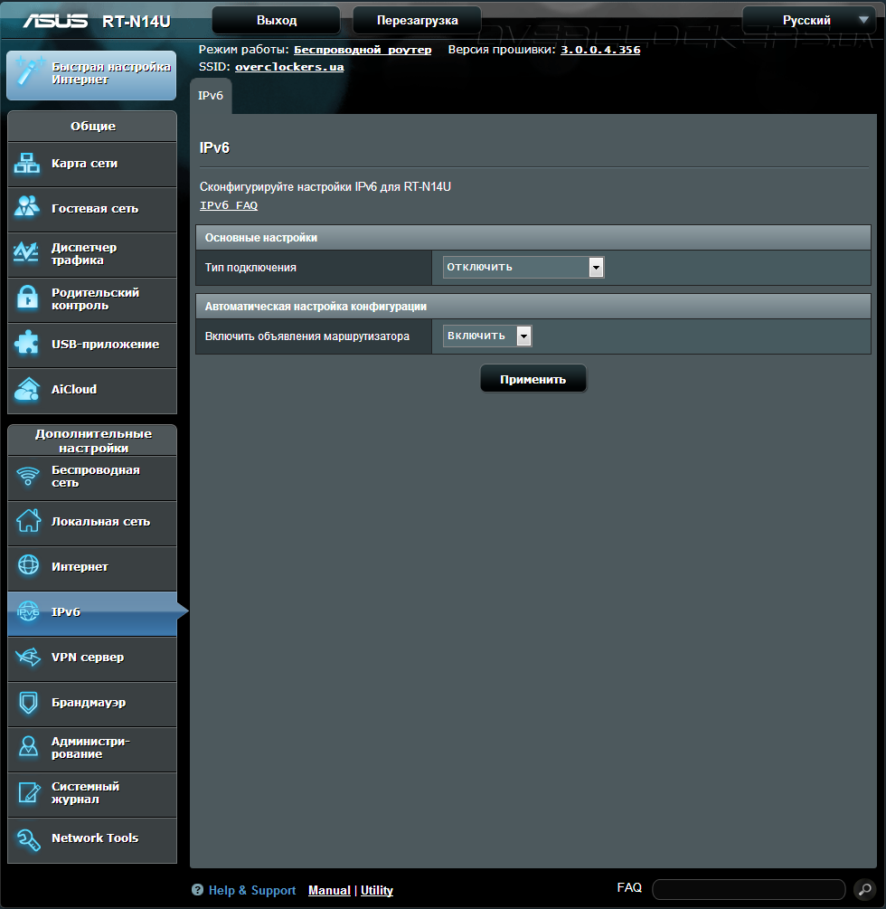 Белые адреса IPv4 уже полгода как закончились, и данный факт нам намекает на то, что переход на IPv6 необратим. ASUS RT-N14U оснащен поддержкой протокола IP шестой версии.