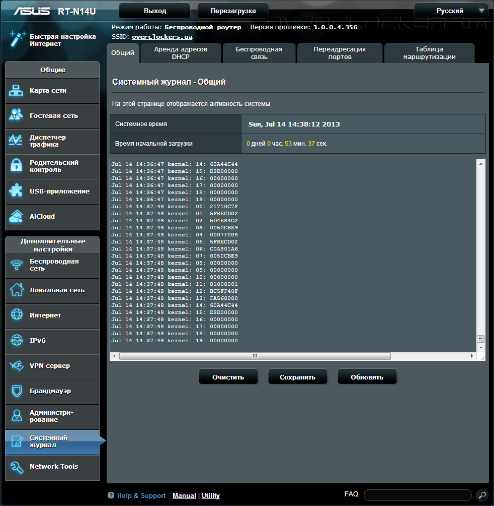 Системный журнал — это целый раздел меню, предназначенный для отображения логов работы оборудования и сети в целом. Предоставить возможность пользователю читать логи, в основном меню, является хорошим тоном среди производителей роутеров, ведь именно в них кроется решение многих проблем в неработоспособности устройства и сети. В данной модели можно изучать: