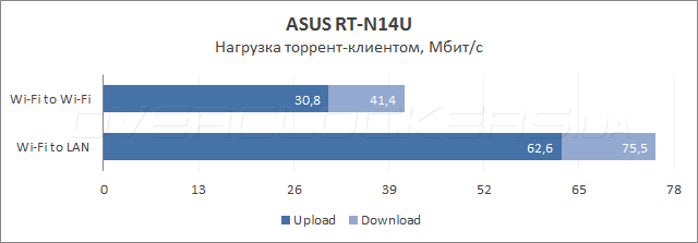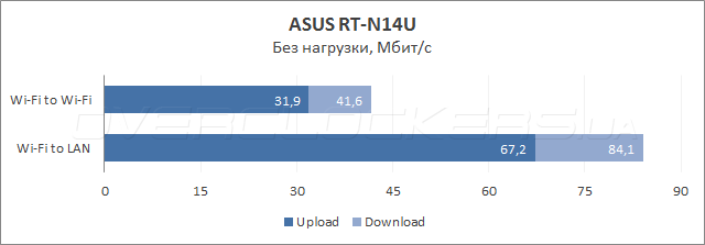 По результатам тестирования мы получили хороший результат, учитывая то, что в качестве приемопередатчиков использовались «свистки» ASUS USB-AC53. Немного огорчили просадки под интенсивной нагрузкой.