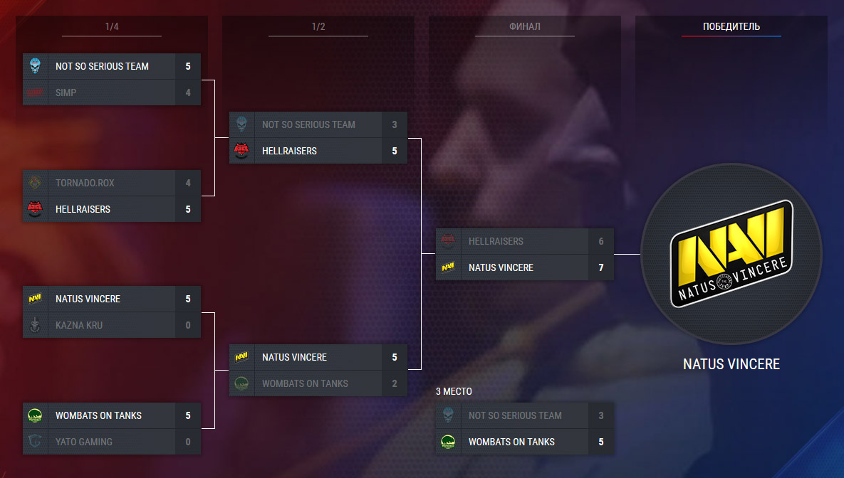 Wombats on Tanks после поражения от Na'Vi собрались и одержали верх над Not so Serious в битве за третье место. Команда Tornado.Rox, костяк которой составляют украинцы, дошла до 1/4 финала. Серебряные призеры 2015 года EL Gaming были разгромлены еще на групповом этапе.