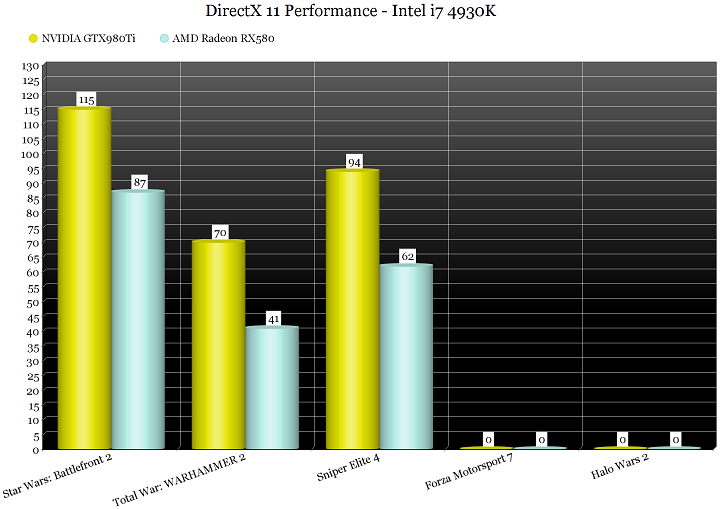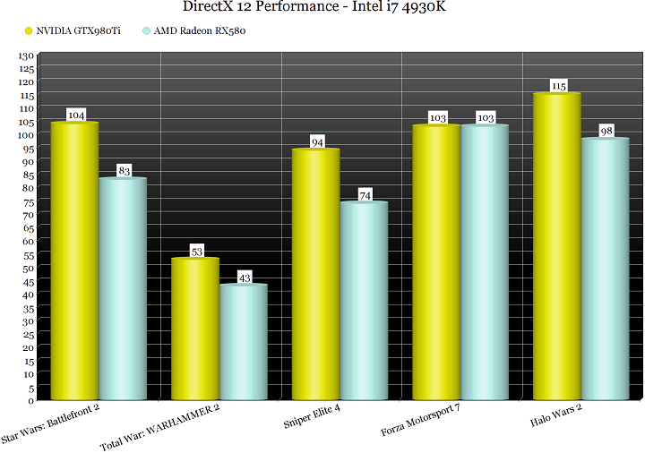 Наши коллеги из DSOGaming на днях решили проверить, какое влияние оказывает переход на новую версию DirectX в играх этого года. Среди них значительный выигрыш в быстродействии получила только Sniper Elite 4 на видеокарте Radeon RX 580, тогда как для Star Wars: Battlefront II и Total War: Warhammer II лучше выбрать в настройках DX 11. При этом Halo Wars 2 и Forza Motorsport 7, использующие исключительно последнюю версию API от Microsoft, неудовлетворительно задействуют вычислительную мощность CPU.