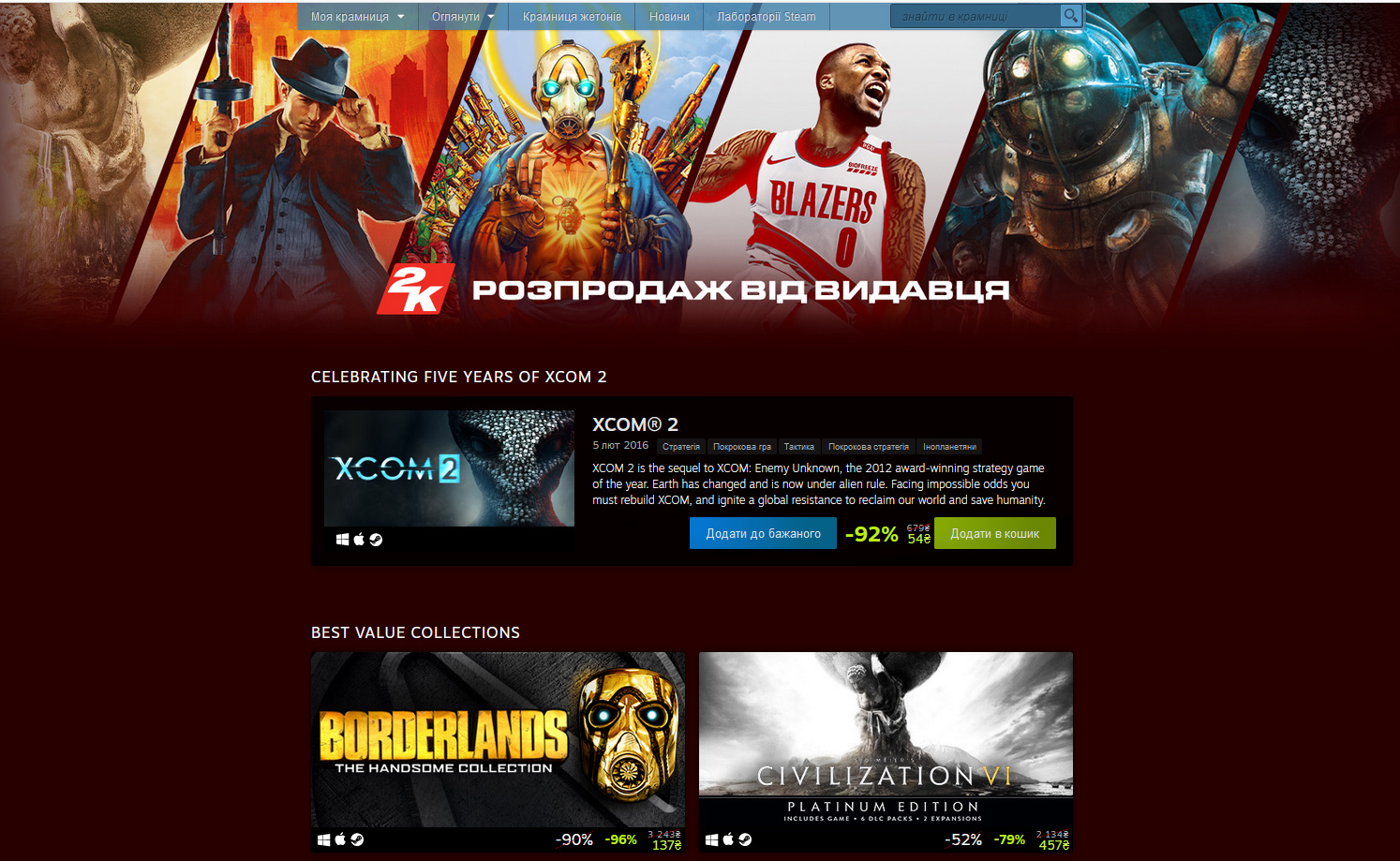 Ознакомится с полным перечнем предложений можно на странице акции. Среди интересного можно отметить набор Borderlands: The Handsome Collection за 137 гривен (-96%), Sid Meier's Civilization VI : Platinum Edition за 457 гривен (-79%), BioShock: The Collection за 154 гривны (-80%). А к примеру классические игры вроде X-COM: UFO Defense, Freedom Force, Sid Meier's Pirates! или Sid Meier's Railroads! доступны за сущие копейки: от 12–16 гривен до 32 гривен.