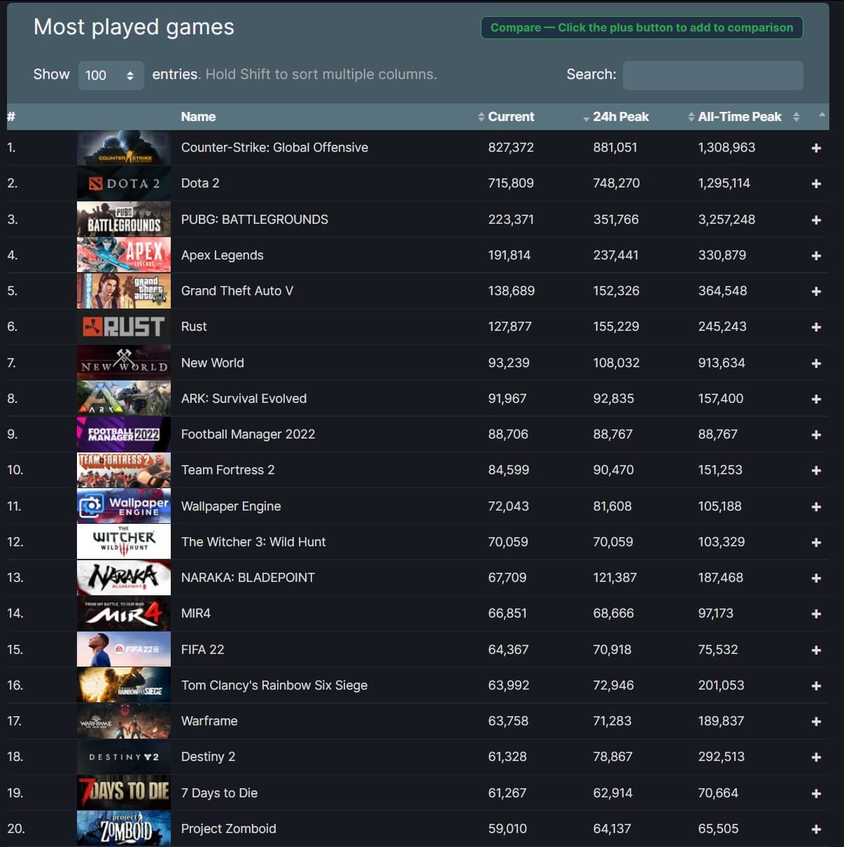 Свой вклад в достижение рекорда также внесли Rust, New World, ARK: Survival Evolved, Football Manager 2022, Team Fortress 2 и много других игр. К примеру, немало игроков вернулось в ролевой экшен «Ведьмак 3: Дикая Охота» на фоне недавнего выхода второго сезона сериала The Witcher в стриминг-сервисе Netflix.