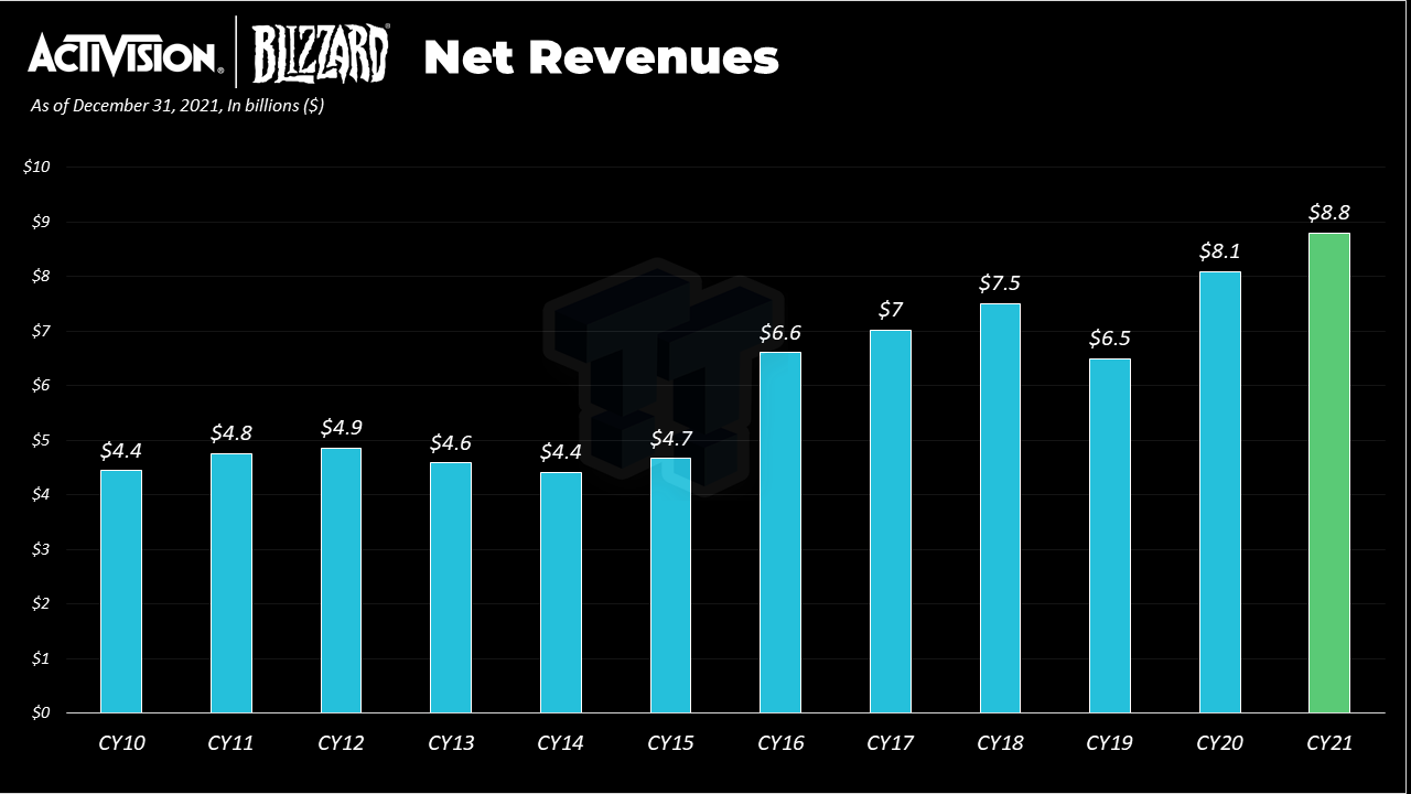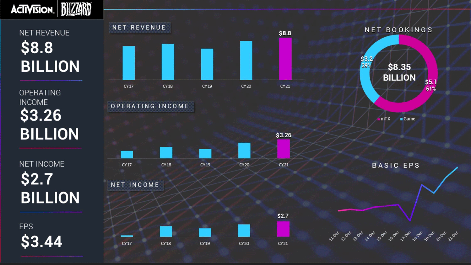 В декабре стало известно о планах Microsoft по приобретению компании Activision Blizzard за $68,7 млрд. Издатель идеально подходит для игровых амбиций Microsoft, которые сосредоточены в основном на живых сервисах, монетизации контента и продвижения службы подписки Xbox Game Pass.