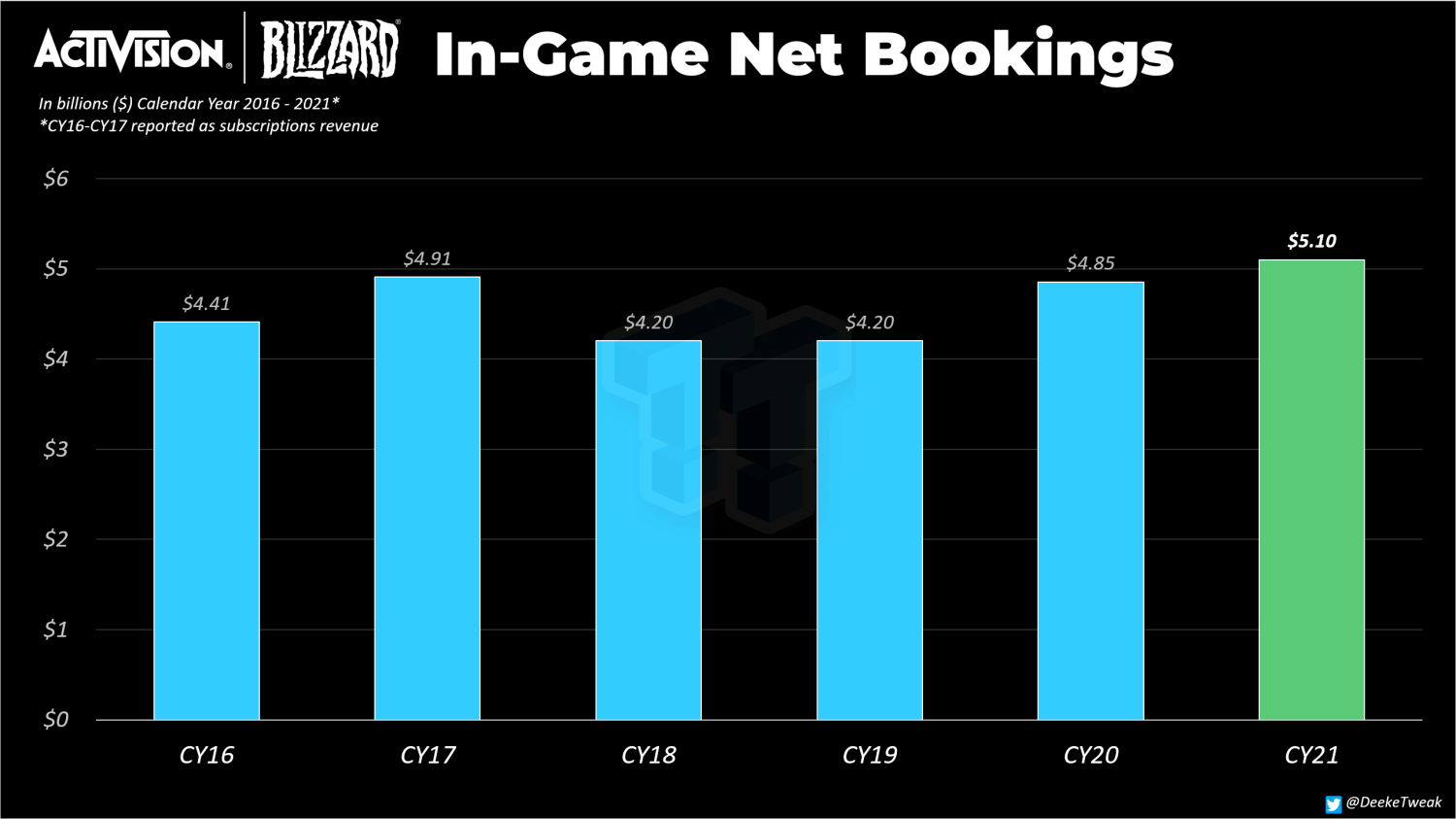 Между тем, $5,1 млрд выручки принесли внутриигровые покупки, включающие DLC, подписки на World of Warcraft, лутбоксы, косметику и другие микротранзакции. Нетрудно посчитать, что они составили 61% от общей выручки Activision Blizzard и являются ключевыми в бизнесе компании.
