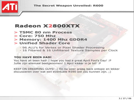 Есть еще одна веселая картинка. На ней изображена карта на базе R600. С сумасшедшими характеристиками :).