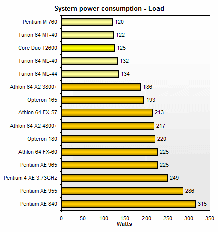 Смотря на результаты тестов, сразу бросается в глаза то, что сейчас в мире нет равных процессоров по отношению производительность/потребляемая мощность. Core Duo - действительно лучший на данный момент процессор для мобильных решений.