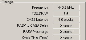 Оперативная память работала на частоте 440 МГц с минимально возможными таймингами и напряжением питания 2,6 В.